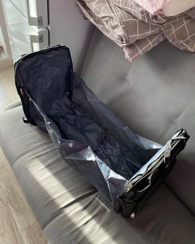 It’s incredibly fast and simple! To transform your bag into a cozy station, just unzip the back compartment and slide the support rods into place. In seconds, you have a safe and clean space for your baby. To pack it away, simply release the clips on the support rods, fold the rods and the sleeper base inward, and zip the compartment closed. You’re ready to go in no time!